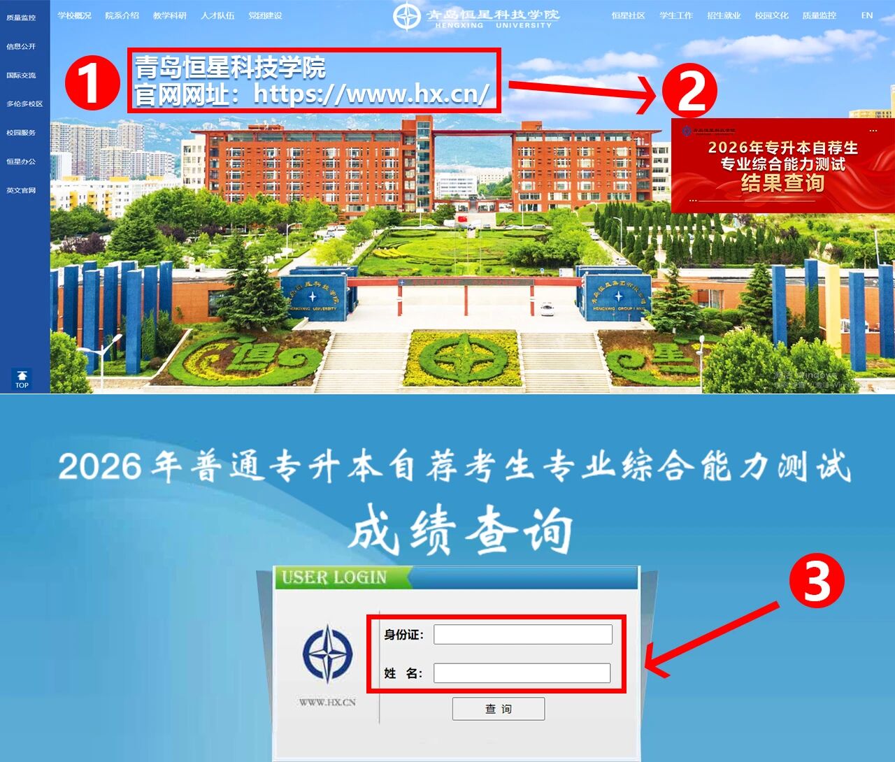 青岛恒星科技学院2026年专升本自荐生专业综合能力测试结果查询及复核公告