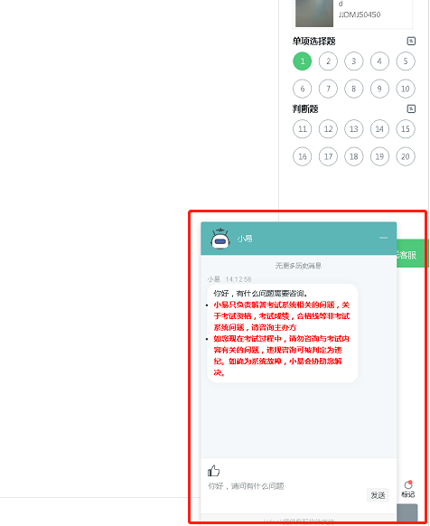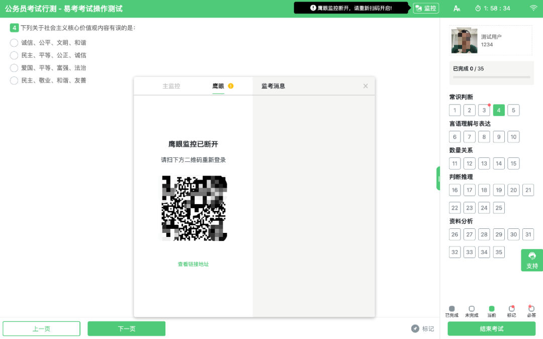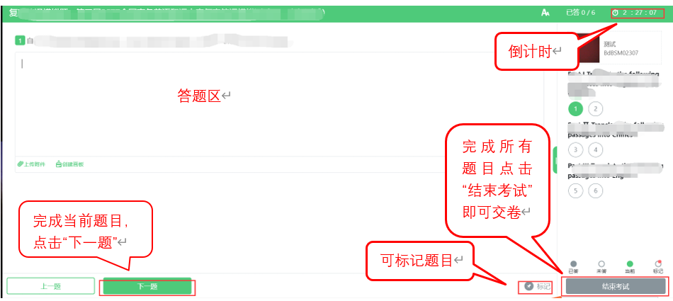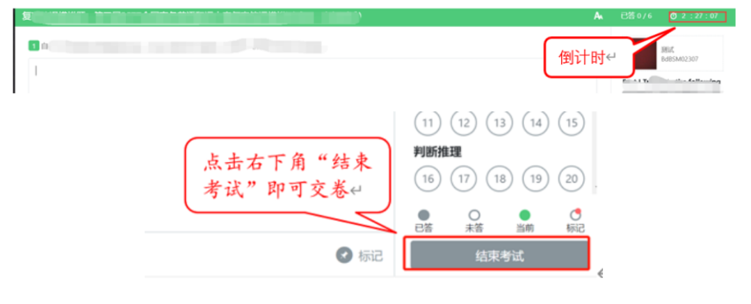 答题结束后,考生可以点击界面右下角的“结束考试”按钮交卷。(如下图所示)