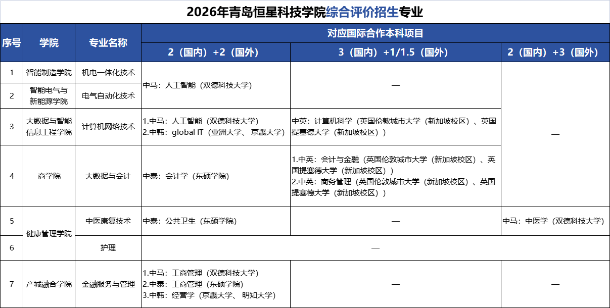 2026年青岛恒星科技学院单招、综合评价招生简章
